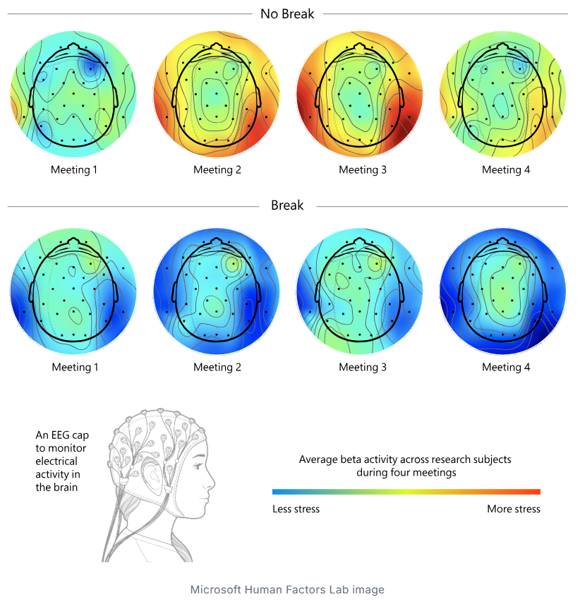 - Space Between Meetings Makes You Smarter: According to Microsoft Human Factors Lab research, space between meetings is essential. This isn't wasted time; it is the necessary period for the brain to convert information into usable intelligence. They studied the brains of people taking no breaks vs. people taking breaks between meeetings and found: "Breaks between meetings allow the brain to 'reset,' reducing a cumulative buildup of stress across meetings."
